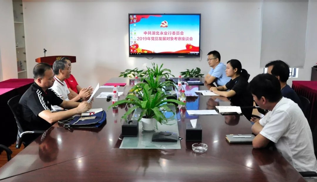 为严把党员发展“入口关”,8月21日下午,武昌区工商联会员企业党委郑昌雄同志一行莅临我司,通过座谈的形式对5名党员发展对象进行考察。我司党委副书记靳剑辉同志、各党支部党员代表以及员工代表参加座谈。 会上,靳剑辉同志向武昌区工商联会员企业党委汇报了公司近期经营发展情况,介绍了入党积极分子基本情况。随后,会员企业党委就考察对象的个人情况、政治态度、工作表现、家庭背景、道德品质、人际关系等逐一与党员群众代表和发展对象本人进行了全面、深入的座谈交流。 郑昌雄同志在讲话中代表武昌区工商联会员企业党委对发展对象提出了三点希望: